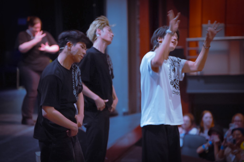 Fans filled the venue. They buzzed with excitement from the post meet and greet high. This high consisted of a group photo and fan sign before the pre-show sound check. Soundcheck was an intimate fan-centered experience. The members introduced themselves and their interpreter. They also warmed up the crowd and tested their mics. They checked and went over the set list for the night’s performance. PADO, the group’s fan name, chanted every lyric like a sing-along. They cheered for their individual performances, including covers from the viral sensation ‘K Pop Demon Hunters’ Soda Pop and Your Idol.